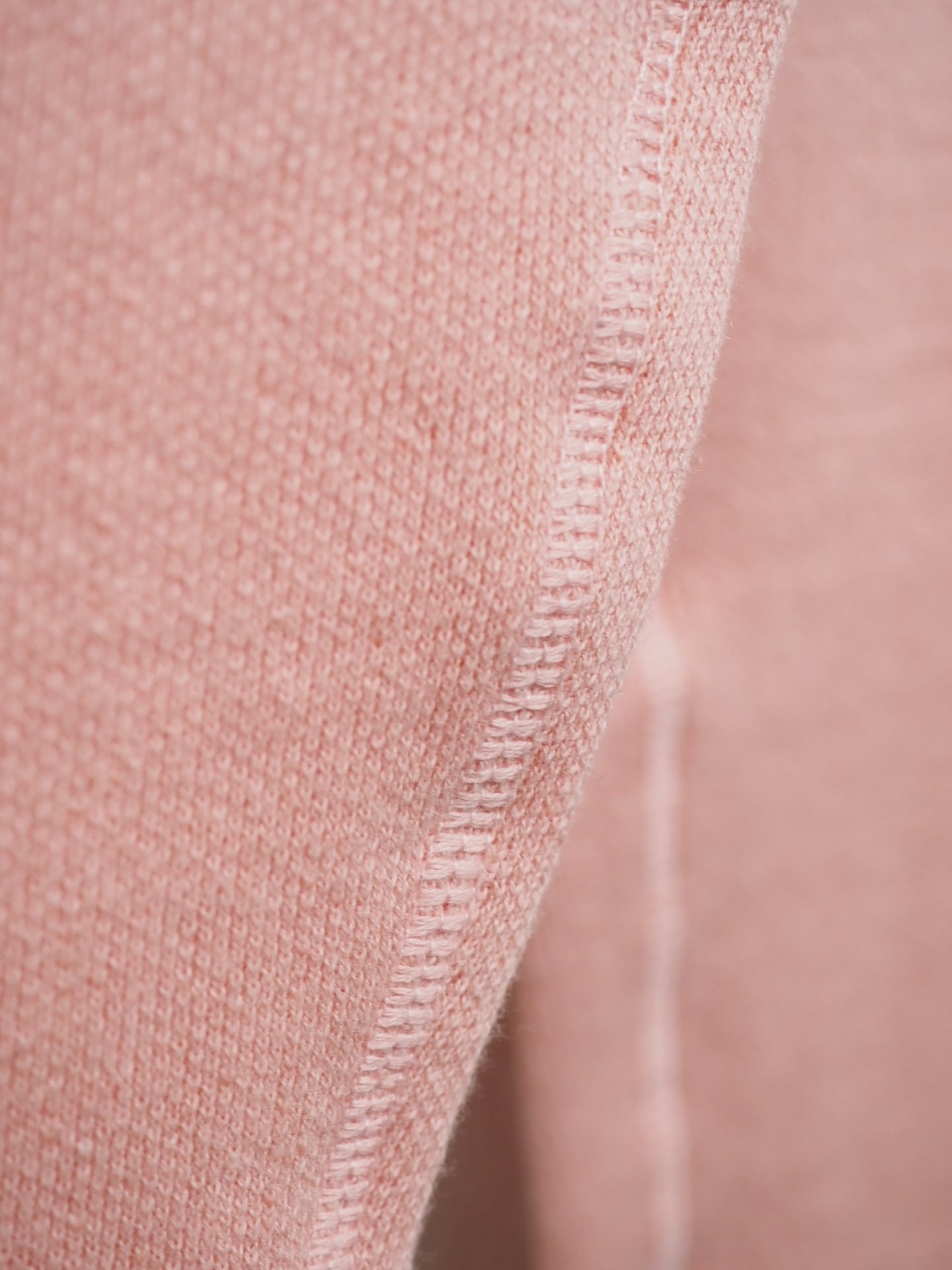 表側がコットン、裏側は18マイクロンというふんわり柔らかなループ上のニット。