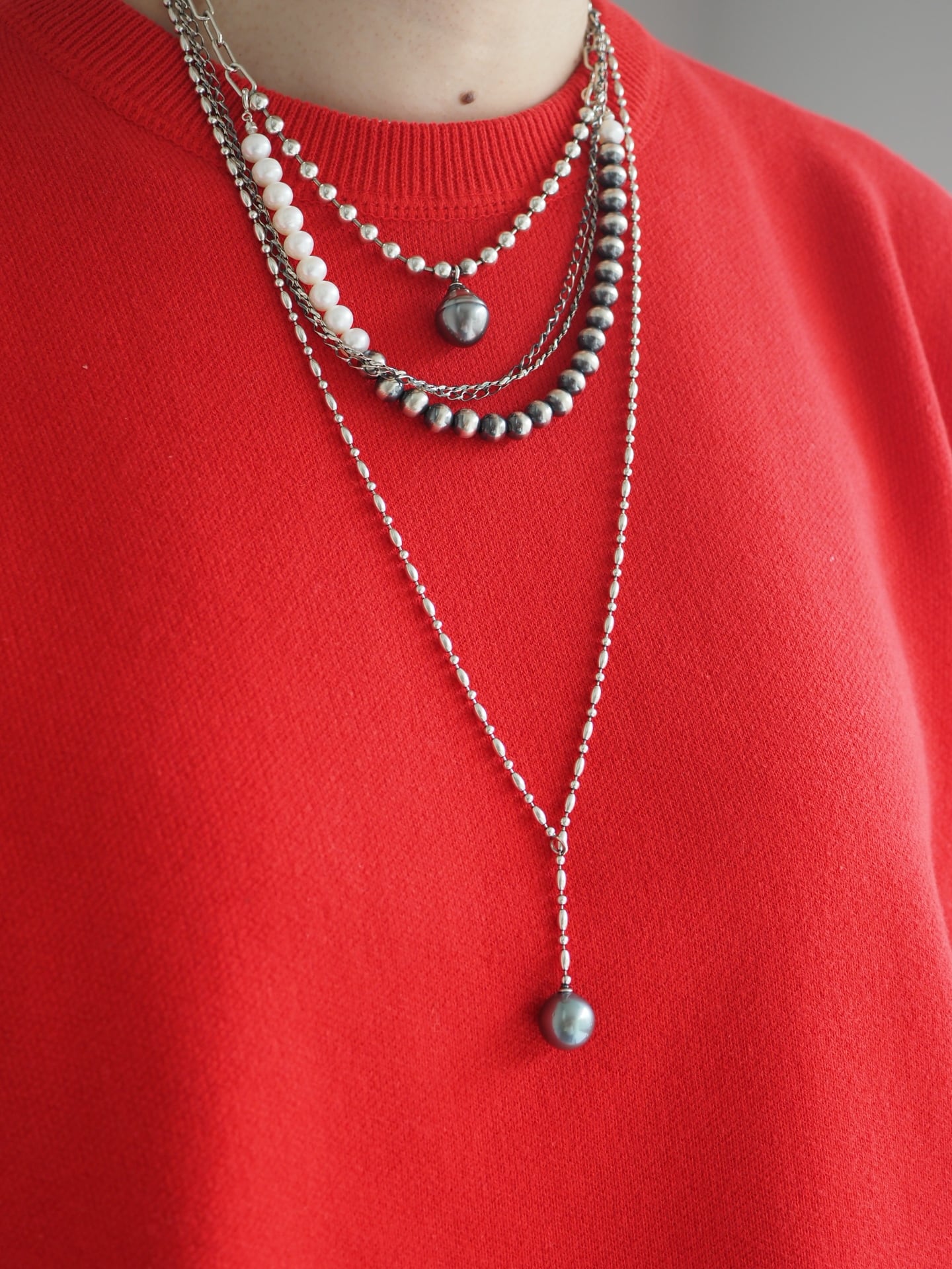 これだけではネックレスとして使用することはできないのですが、Ball chain mix necklaceやJoint partsと繋げて重ね付けのバランスやボリューム感をお楽しみいただけます。