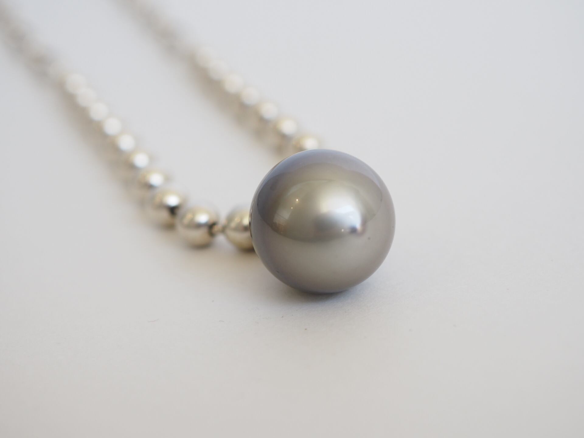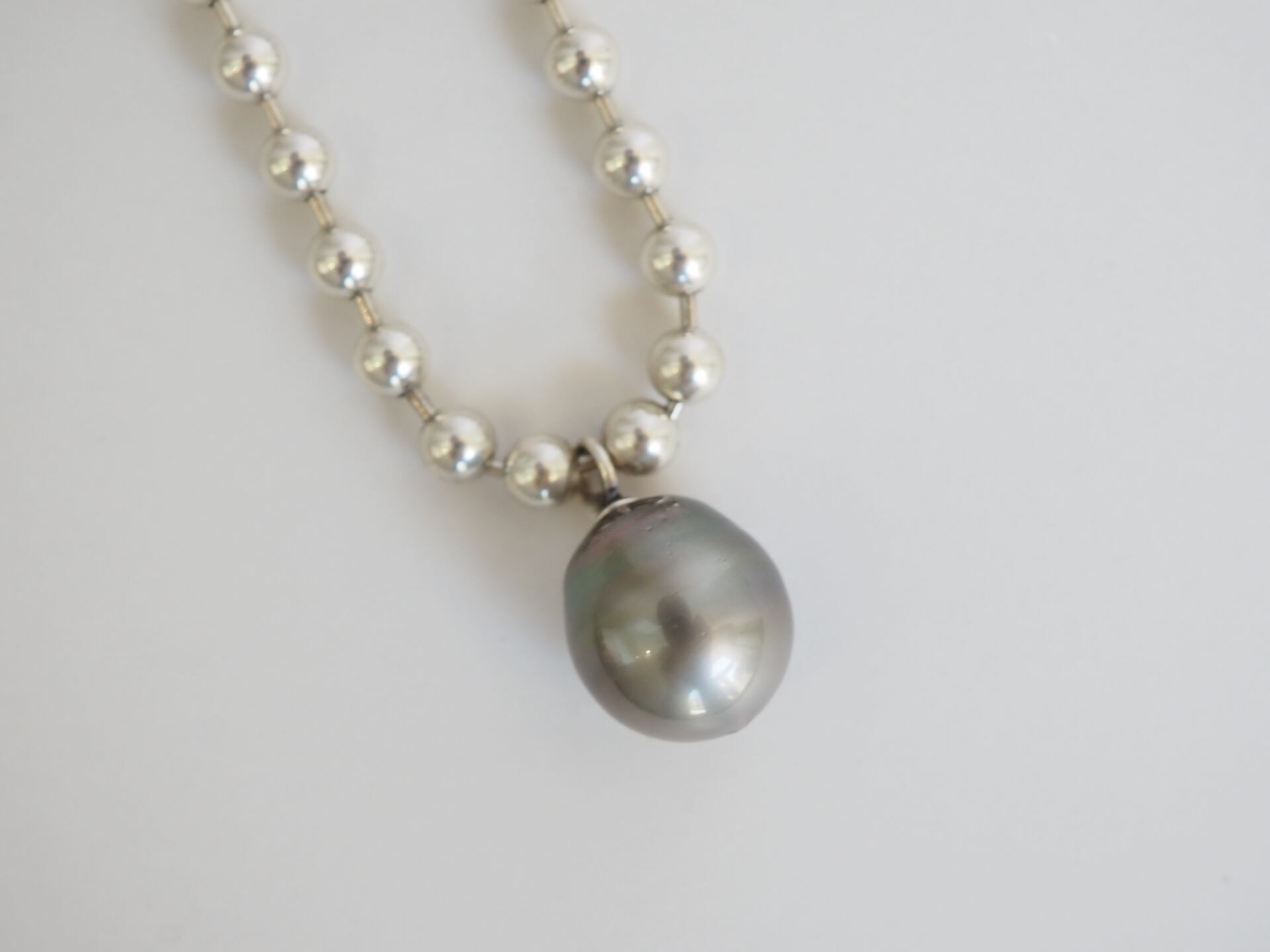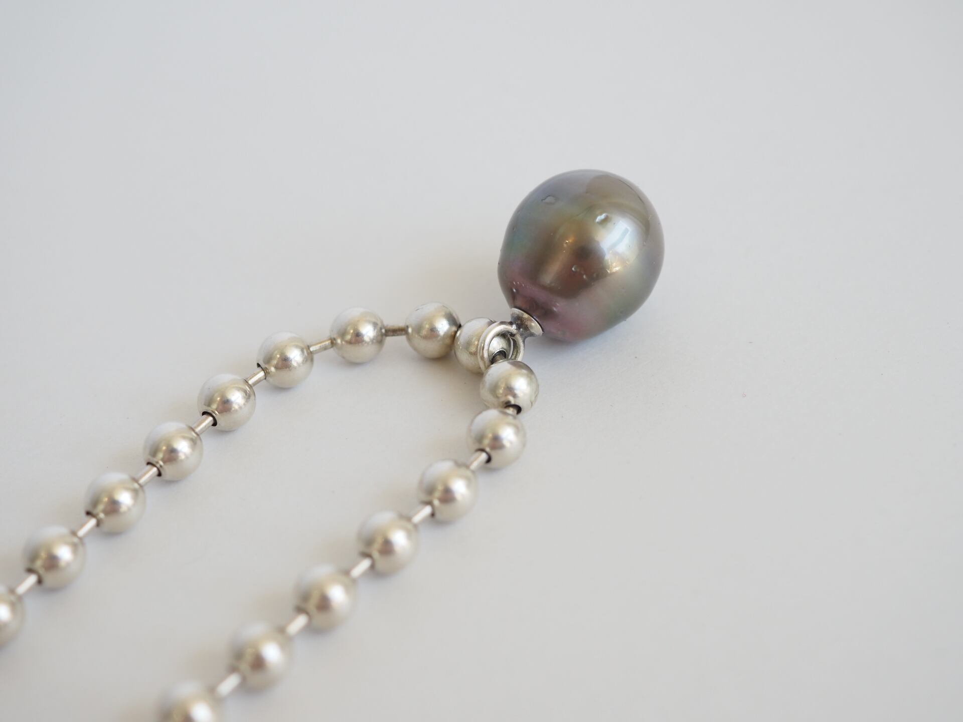 そんなパールをミックスチェーンにセットしたショートネックレス。