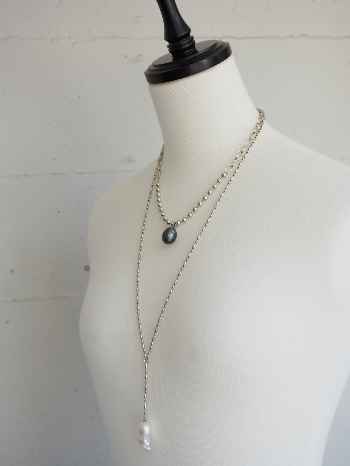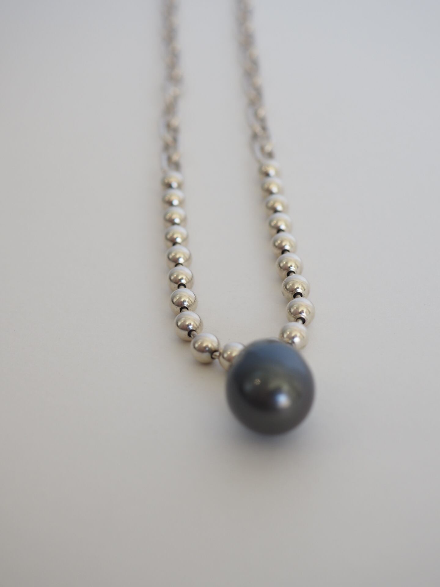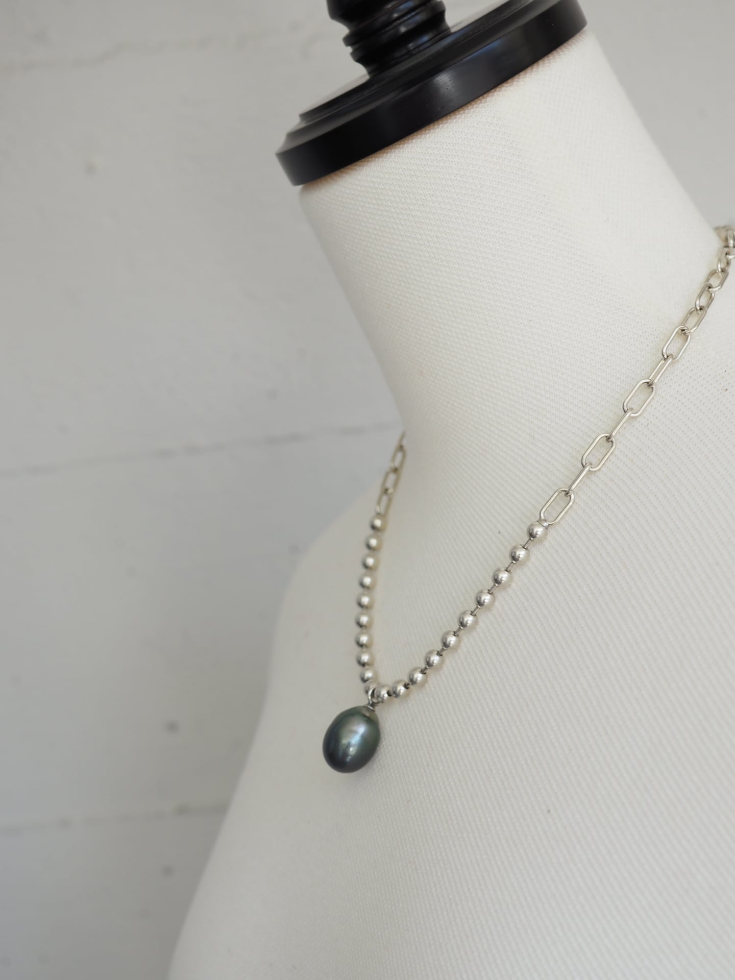 そんなパールをミックスチェーンにセットしたショートネックレス。