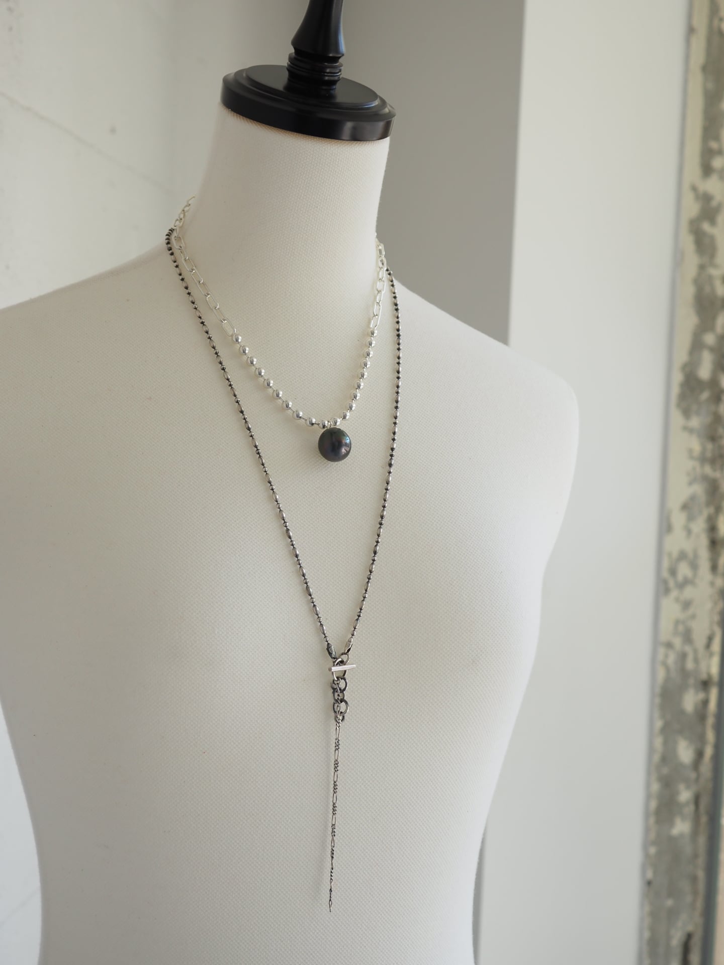 チェーンもパールも存在感たっぷりです。
