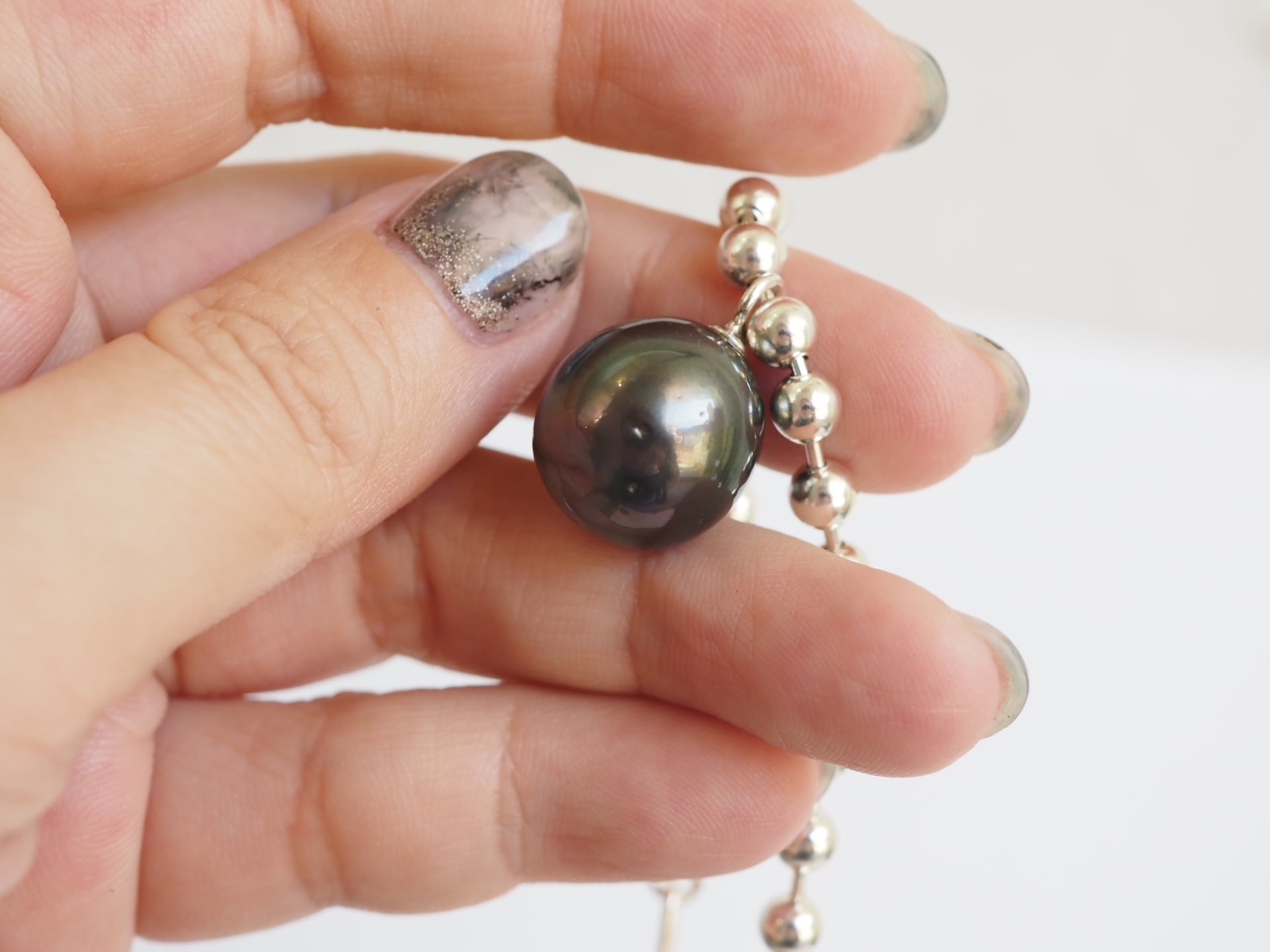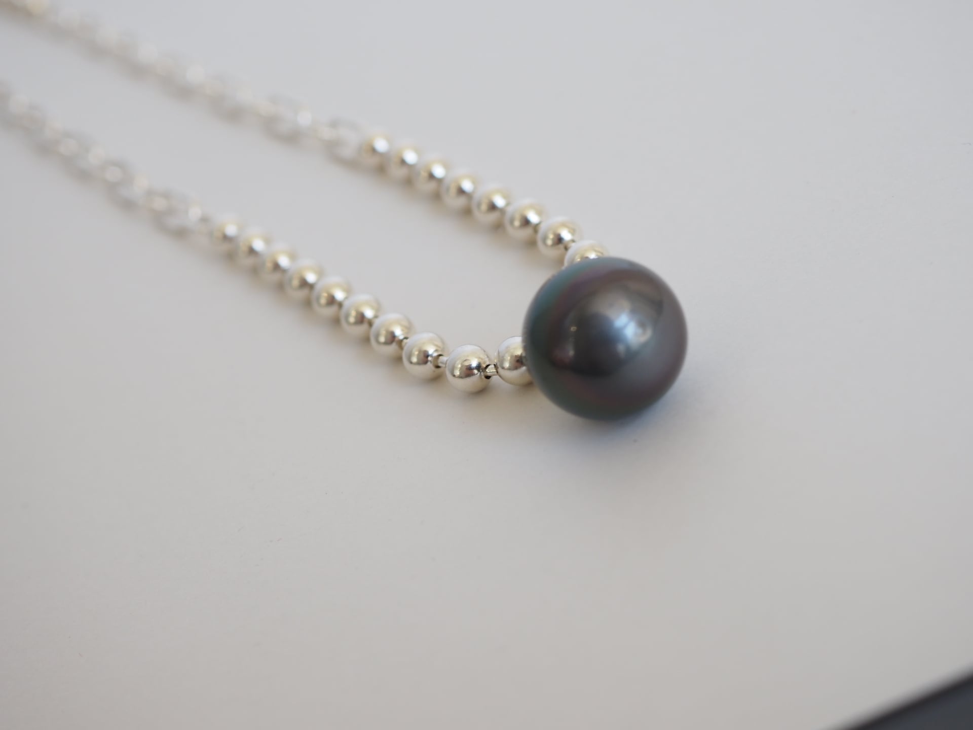 13. Ball chain short necklace /tahitian pearl
