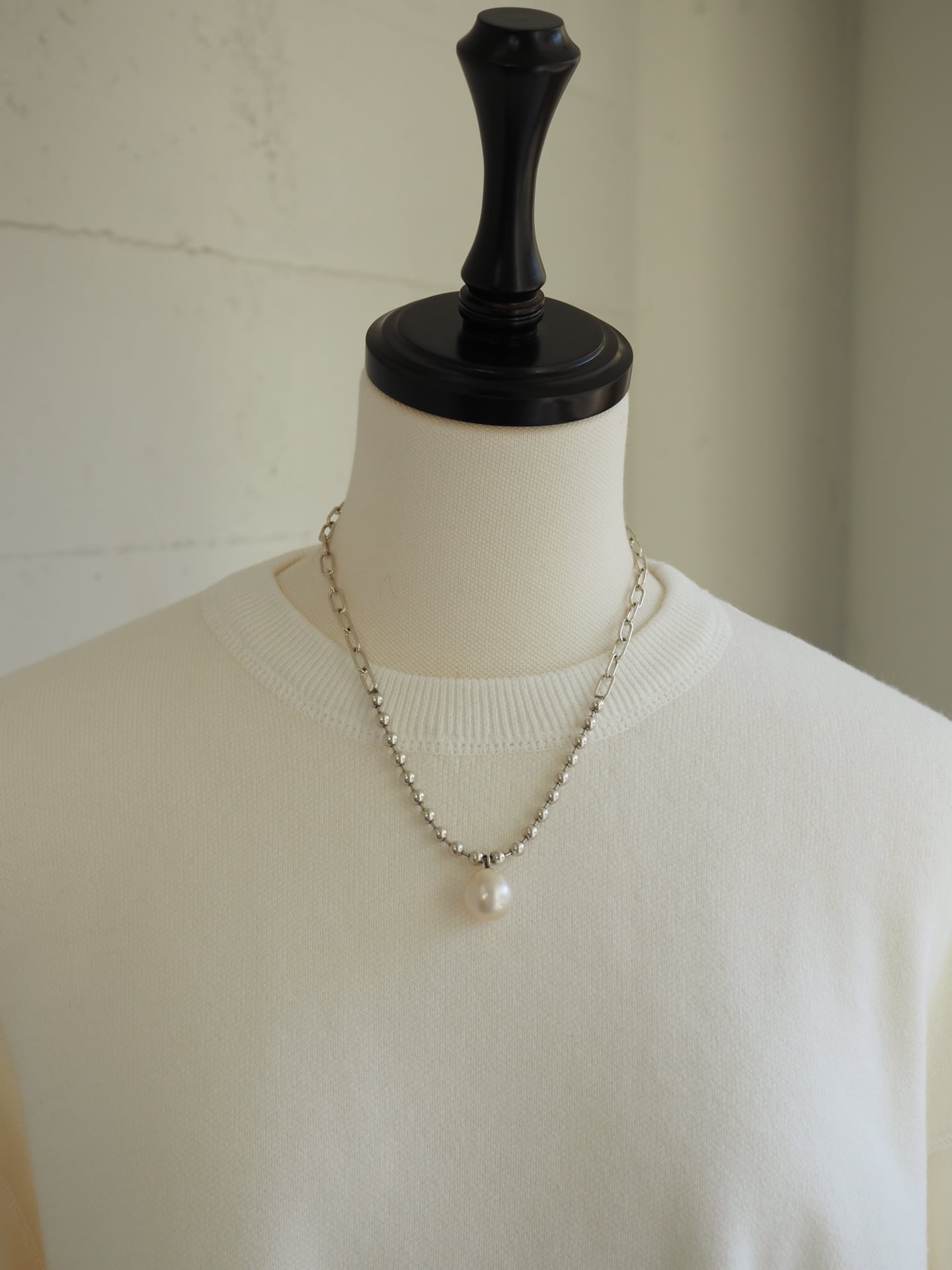 そんなパールをミックスチェーンにセットしたショートネックレス。