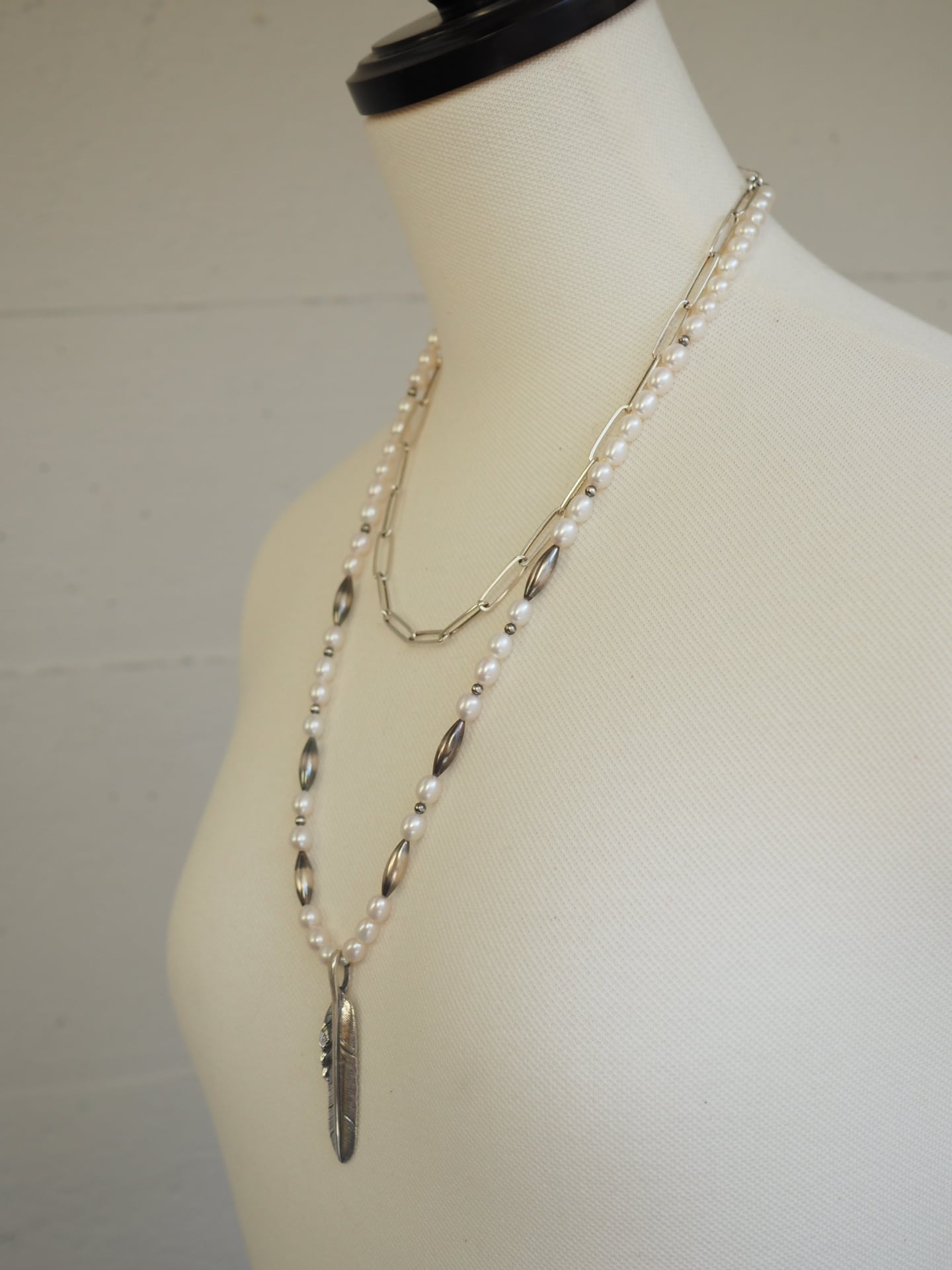 これだけではネックレスとして使用することはできないのですが、Ball chain mix necklaceやJoint partsと繋げて重ね付けのバランスやボリューム感をお楽しみいただけます。
