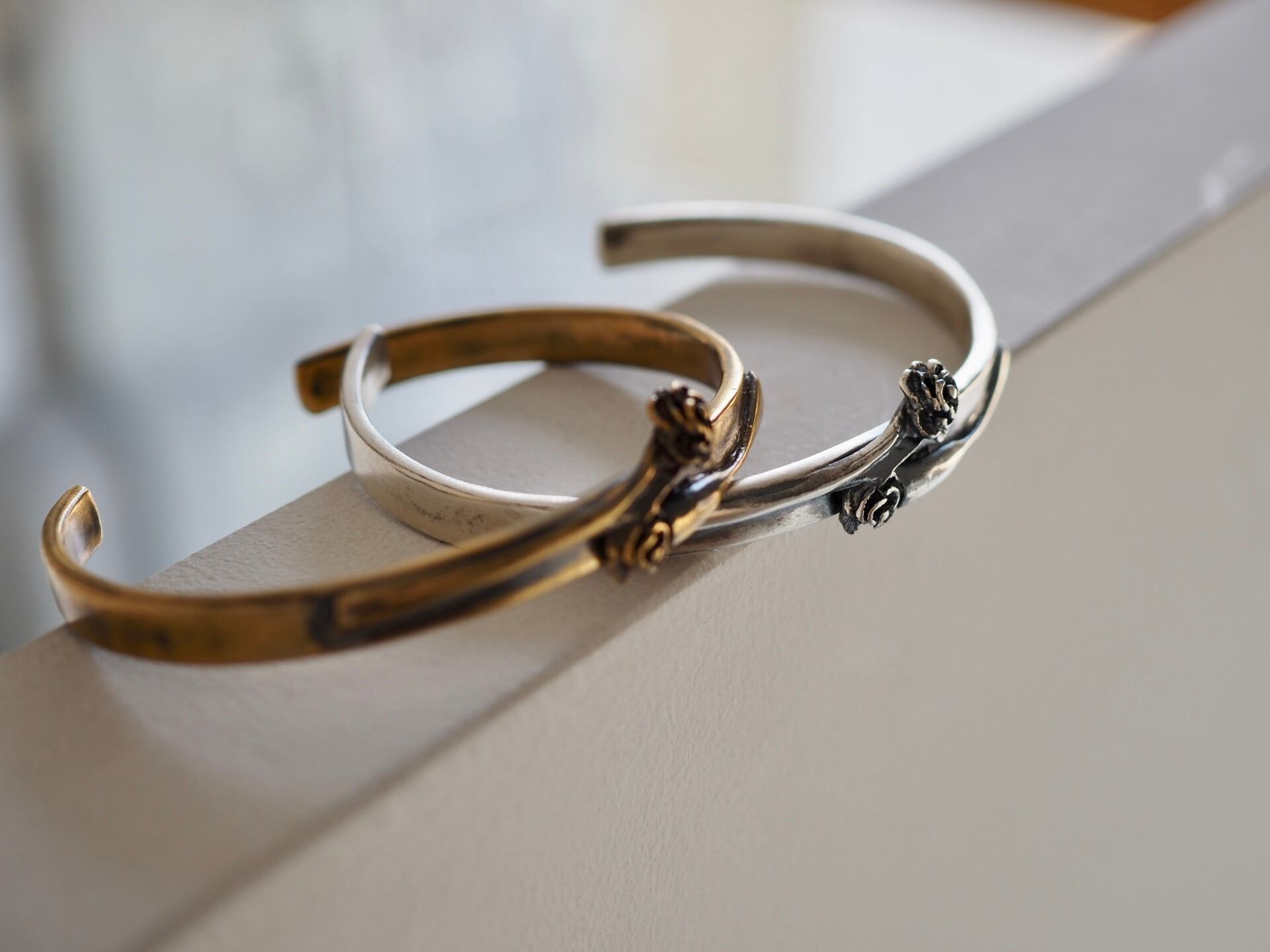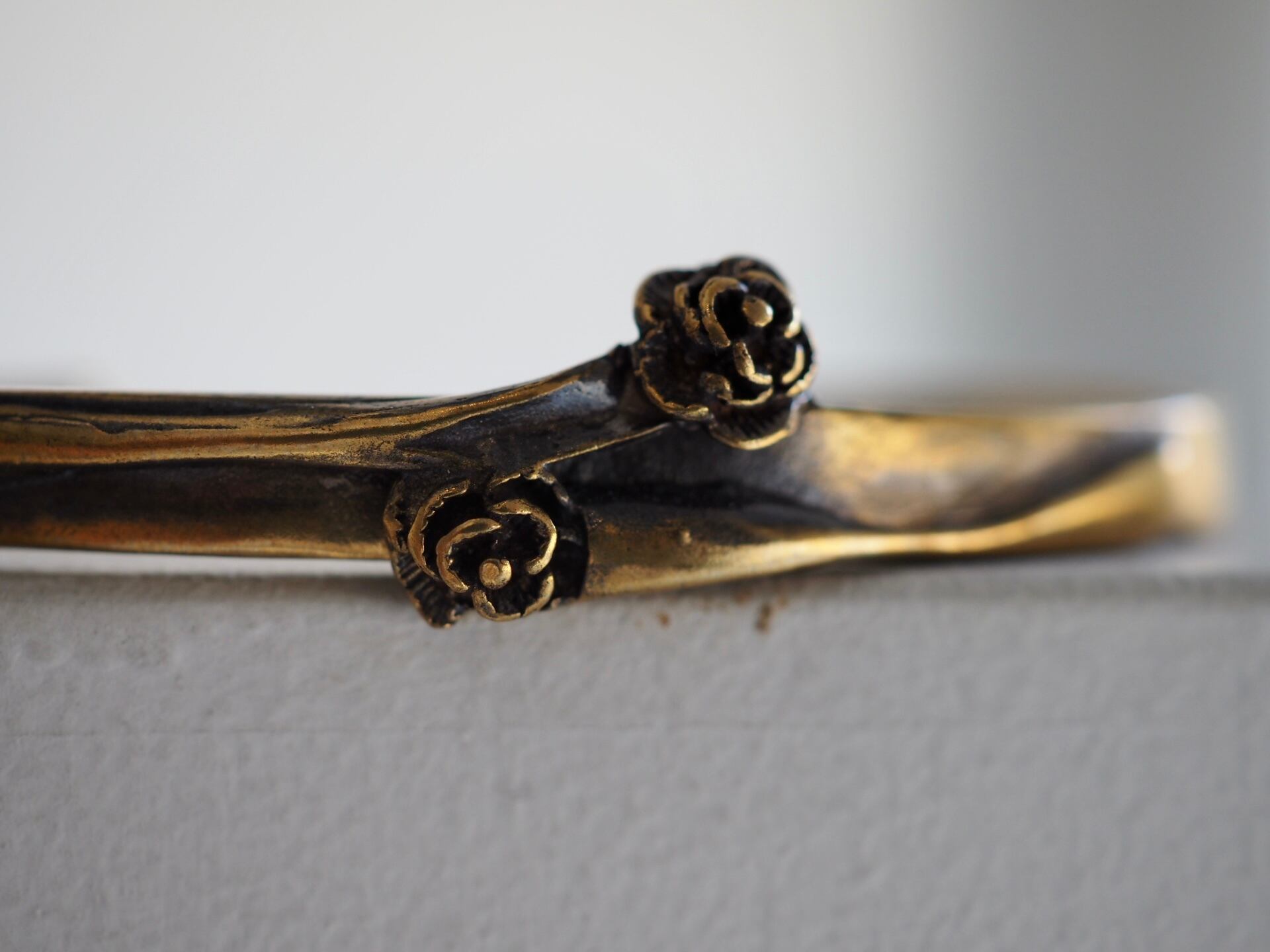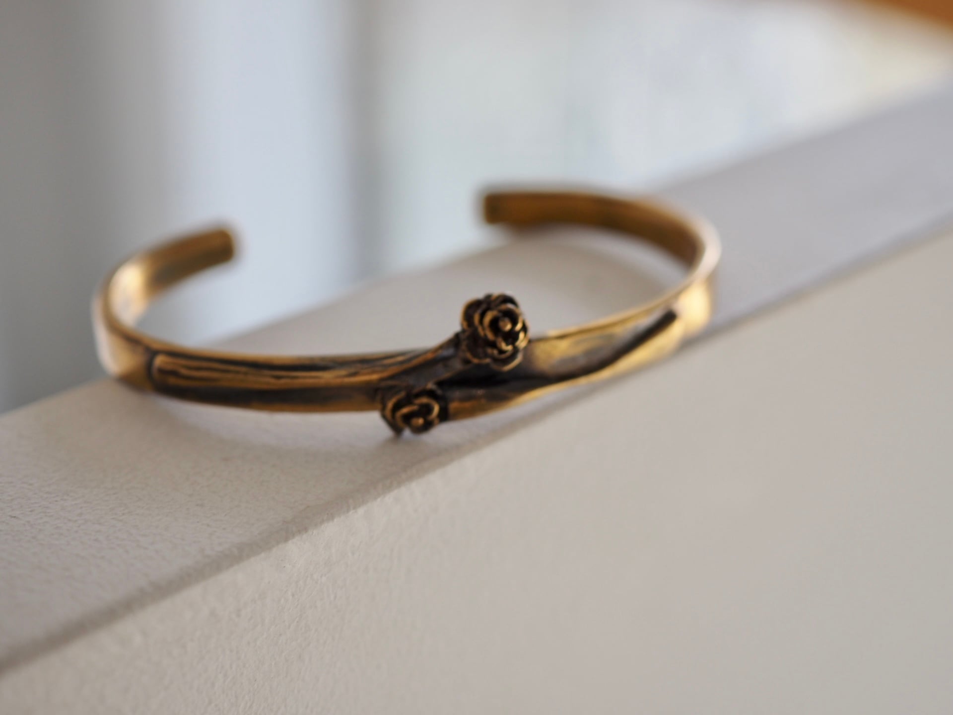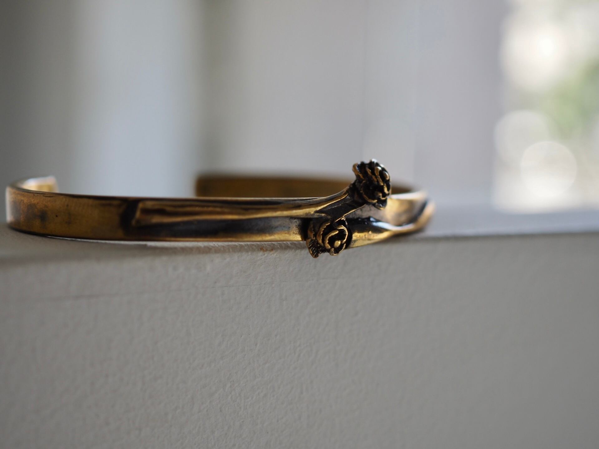 真鍮に燻し加工を施しアンティークのような味わいに。ゴールドの色にだんだんと深みが増します。